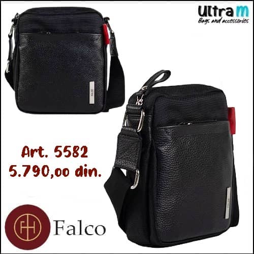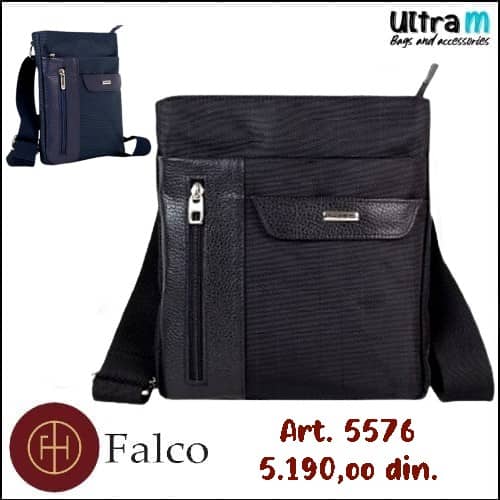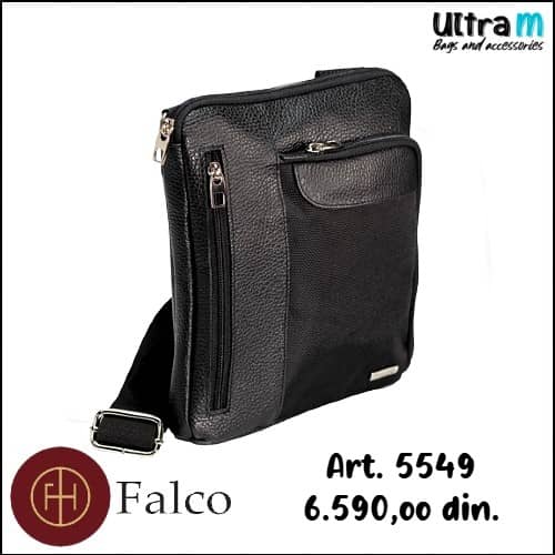 Muška torbica Falco House Art. 5549-10 Crna koža-platno