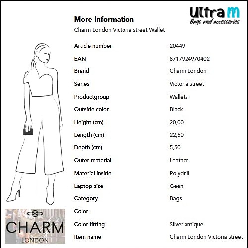 Novčanik dimenzije 20 x 22.5 x 5.5 cm.