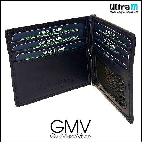 Muški crni kožni novčanik Gian Marco Venturi za kartice i sa metalnom šnalom za papirni novac.